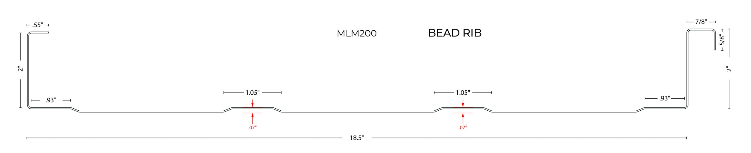 The MLM200 profile delivers bold architectural lines and maximum structural performance. With its tall ribs and hidden fastener system, it is designed for long spans and extreme durability. Ideal for low-slope commercial roofs or dramatic vertical cladding, this profile can be mechanically seamed or snap-locked depending on performance requirements. Available in a variety of gauges and finishes, the MLM200 profile is built for demanding environments and standout aesthetics.